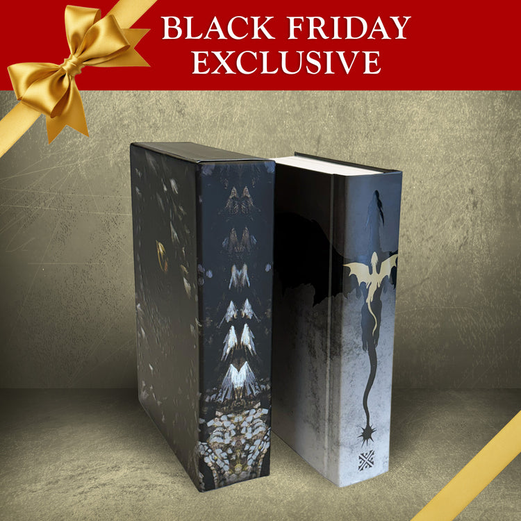 • Slipcases embellished with foil-stamping and 3D embossing with dragon character art by Rebecca Fara